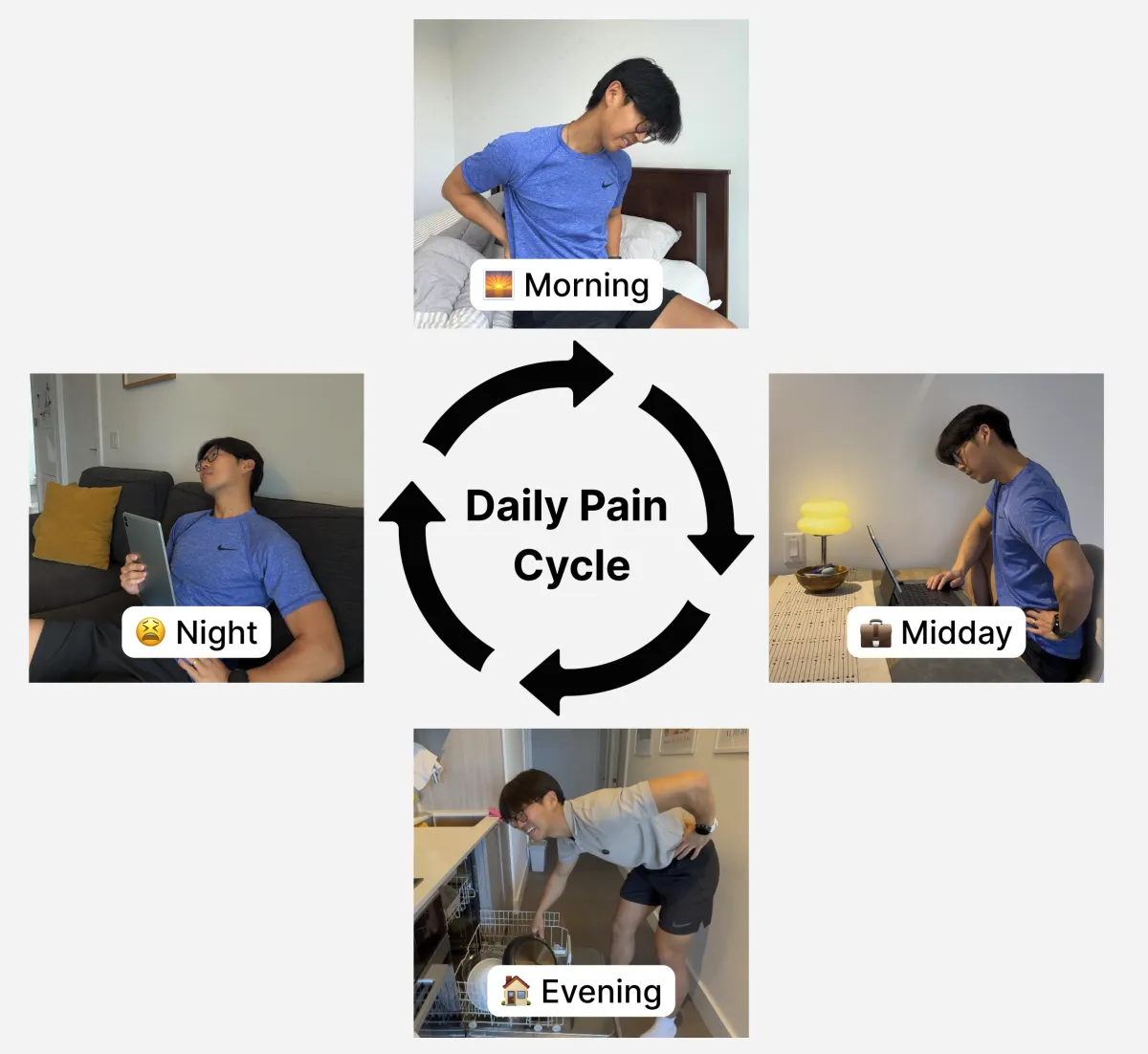 Every day you continue doing random exercises with no objective feedback, you're losing ~2-3 hours of comfortable sitting time, hundreds (or even thousands of dollars) on treatments that don't address the root cause, and the confidence to move freely through your day.